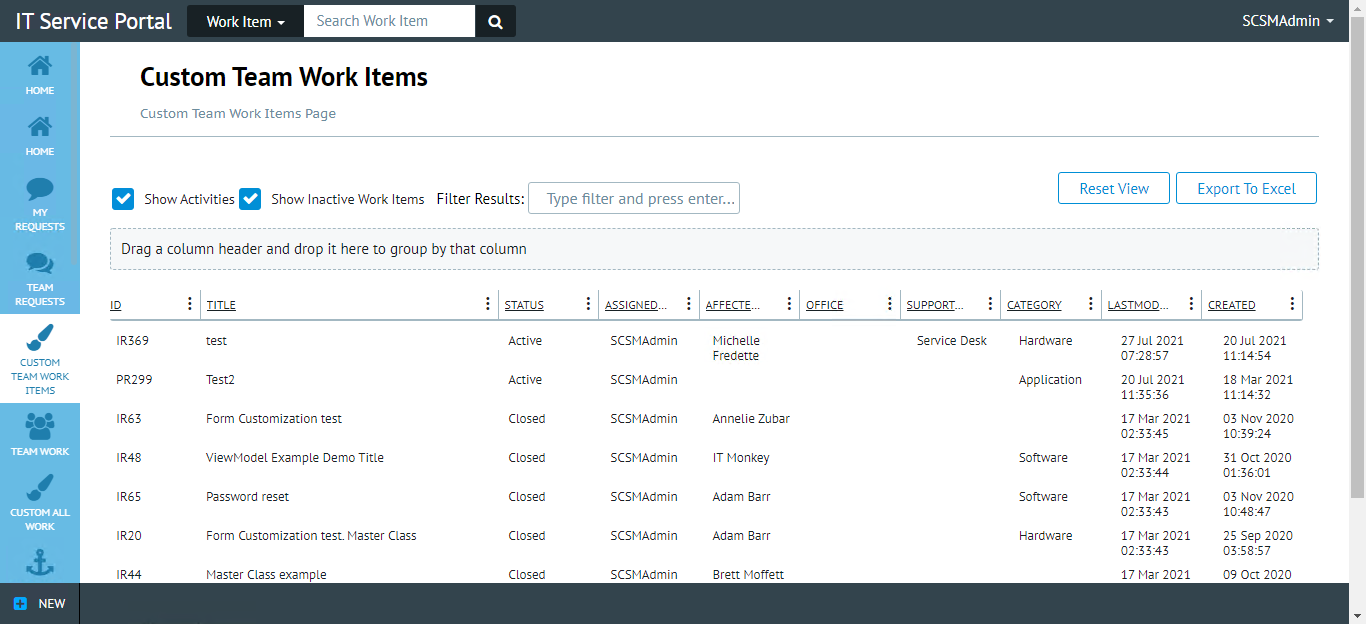 In this article, I will step through how to not only create a custom view but also how to retain the Show\Hide check boxes that would be expected of the main work item views in the Cireson portal.