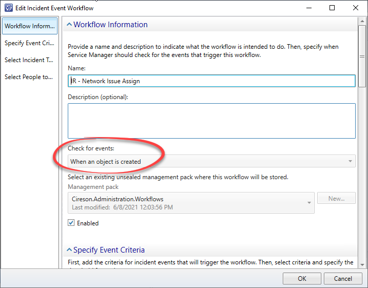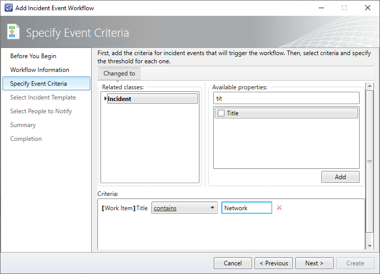 Setting a more specific set of criteria will reduce the number of incorrect triggers of this workflow and will greatly reduce, but potentially not eliminate, the number of migrated work items that will be impacted when this workflow runs. Technically there could be some IR in the source data that is Active, has the word Network in the title and has been unassigned from a support group, but these are diminishing numbers.
