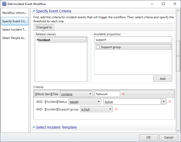 Setting a more specific set of criteria will reduce the number of incorrect triggers of this workflow and will greatly reduce, but potentially not eliminate, the number of migrated work items that will be impacted when this workflow runs. Technically there could be some IR in the source data that is Active, has the word Network in the title and has been unassigned from a support group, but these are diminishing numbers.
